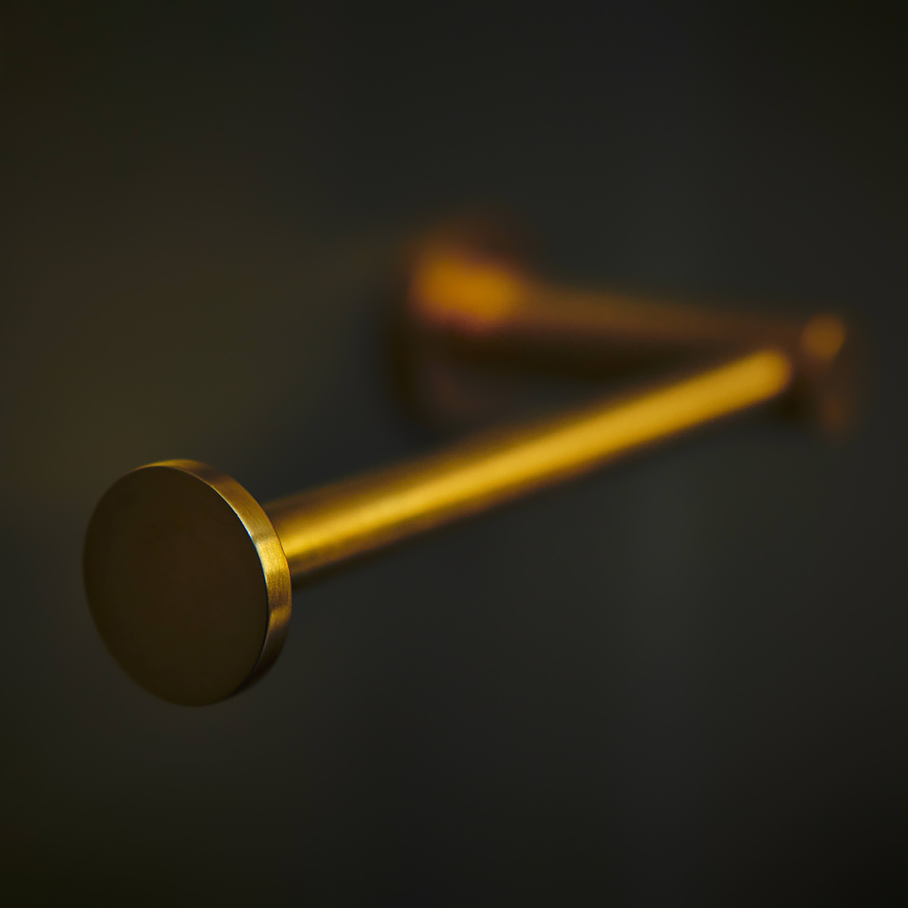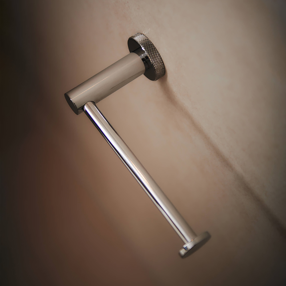 Геометрия держателя подчёркнута прямыми линиями и плавным изгибом, создавая ощущение лёгкости и сбалансированности. Аксессуар гармонично вписывается в интерьер, не перегружая его и сохраняя общий стиль.