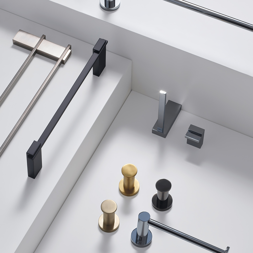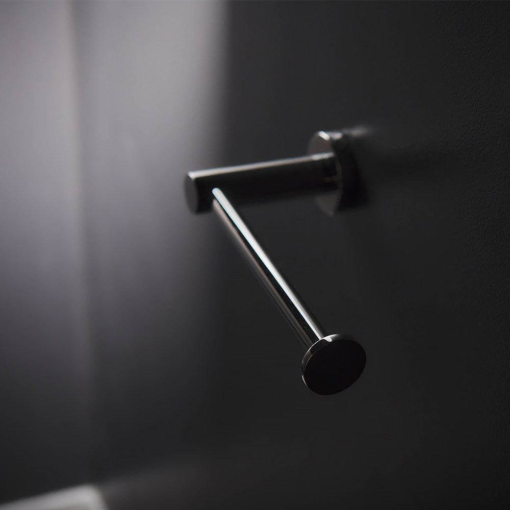 Минималистичная геометрия и продуманный изгиб кронштейна обеспечивают надёжную фиксацию рулона, сохраняя визуальную лёгкость. Модель легко сочетается с остальными аксессуарами коллекции, формируя цельную композицию.