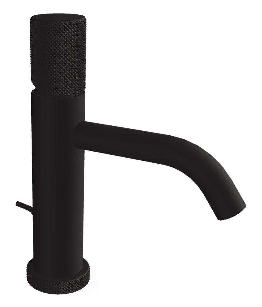 Корпус выполнен в чёрном цвете с матовым покрытием — покрытие подчёркивает графичность форм и устойчиво к появлению следов от воды. Такая отделка гармонично сочетается с камнем, бетоном и светлой керамикой.