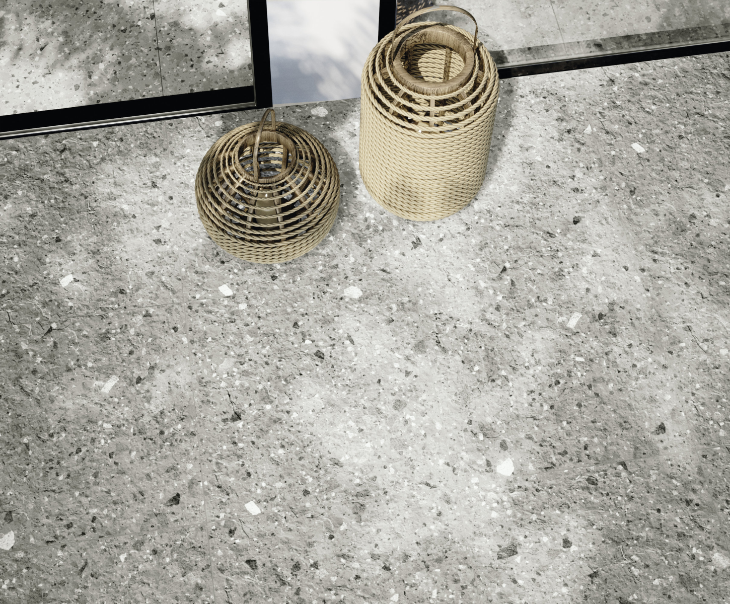 Узнать ценуFMG Venice Villa Venice grey раскрывает с современной точки зрения в интерьере и экстерьере благородство и красоту венецианской плитки терраццо. На поверхности искусно воссоздана текстура цементного раствора серого оттенка, украшенного серой и белой каменной крошкой. Шикарно смотрится в эклектичных, современных и классических интерьерах – гостиных, прихожих, душевых комнатах, рабочих кабинетах, офисах и коммерческих пространствах. Матовая поверхность придает помещению изысканность, стиль и уют. Гармонично дополняется аксессуарами и мебелью из натуральных материалов, глянцевой или матовой фурнитурой, яркими акцентами.