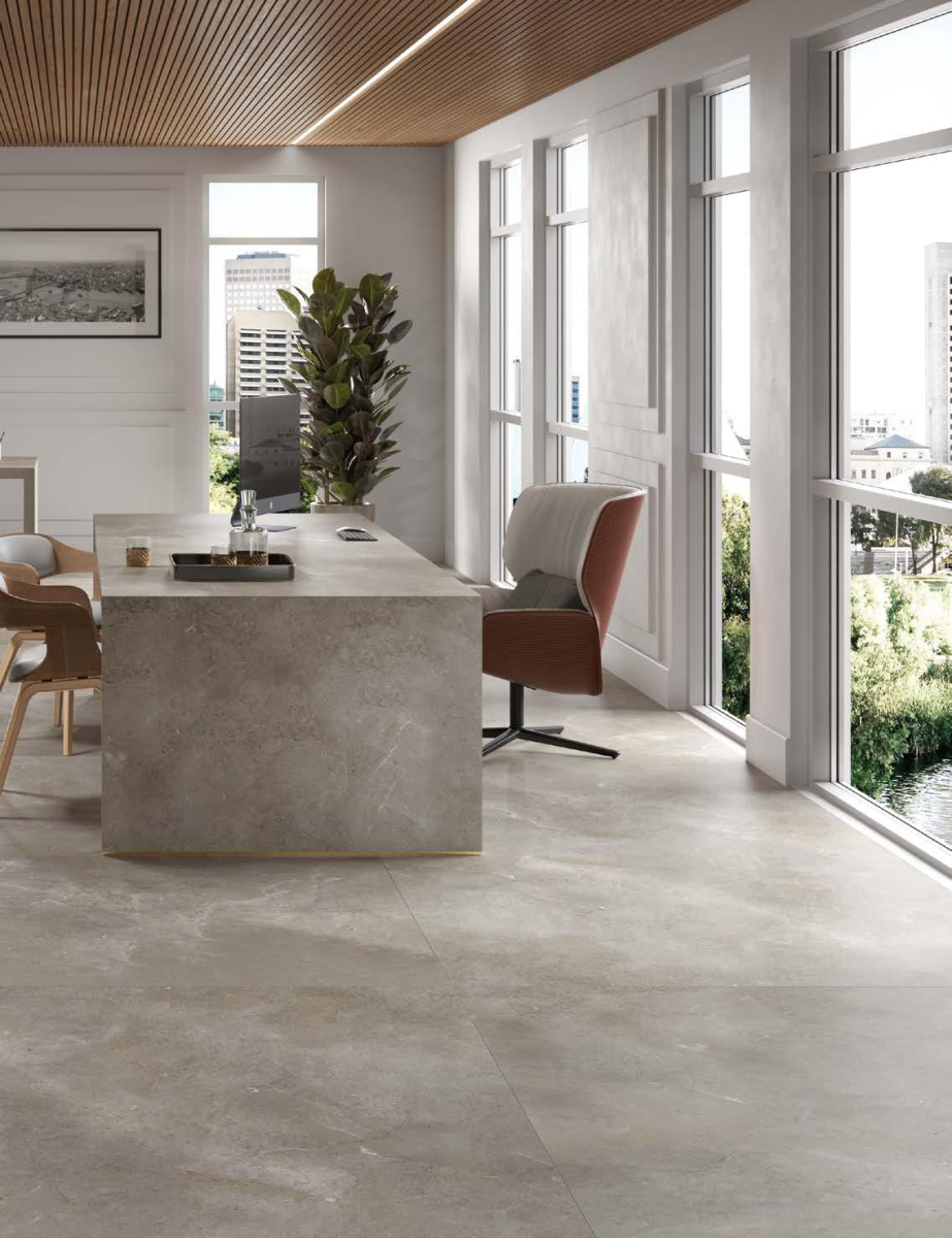 Узнать ценуКерамогранит FMG MAXFINE Art Stone Abyss grey naturale 270х120 – универсальный большой, легкий, красивый и прочный формат для проектирования и покрытия всех видов поверхностей в архитектурных пространствах. Современное прочтение природной красоты камня, где каждая плита раскрывает неповторимый рисунок с характерными прожилками и пятнами. Глубокий серый оттенок привносит ощущение спокойствия и стабильности, делая этот материал идеальным выбором для обновления современной архитектуры и дизайна интерьера. Органично сочетается с натуральными элементами, такими как дерево, металл и стекло, позволяет создавать гармоничные и сбалансированные пространства. Яркие акценты в виде аксессуаров и текстиля подчеркнут глубину и многогранность серой плитки на полу и на стенах, добавляя интерьеру индивидуальность.
