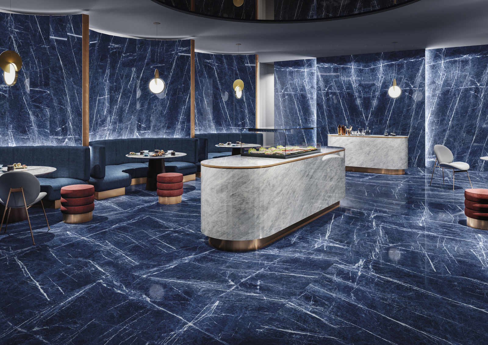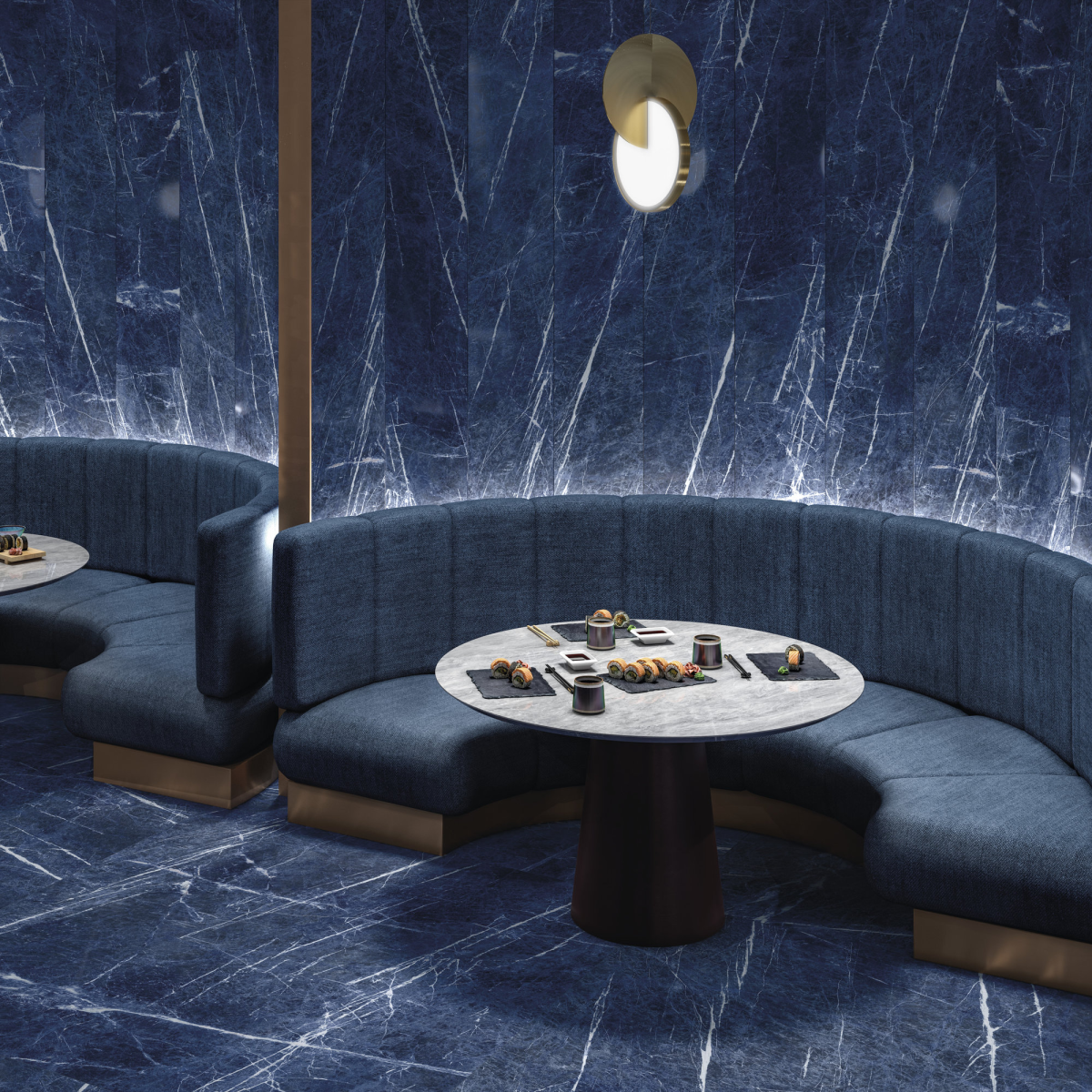 Brazilian Blue от FMG Maxfine Marmi – не просто керамогранит, а застывшая поэзия цвета и формы. Насыщенный синий оттенок, словно кристально чистая вода, скованная зимним льдом, притягивает взгляд и завораживает своей глубиной. Причудливые белые прожилки, пронизывающие синюю гладь, подобны морозным узорам на стекле. Они добавляют материалу неповторимый характер и изысканность. Материал станет идеальным решением для оформления коммерческих пространств, будь то строгий рабочий офис, элегантный магазин или фешенебельная гостиница. Привнесет в интерьер атмосферу роскоши и утонченности, подчеркнет безупречный вкус владельцев и создаст неповторимый стиль. Полированная поверхность керамогранита не только приятна на ощупь, но и обладает великолепными отражающими свойствами. Под умелым светом Brazilian Blue раскрывает всю палитру своих оттенков, создавая игру света и тени, которая придает интерьеру дополнительную глубину и выразительность.
