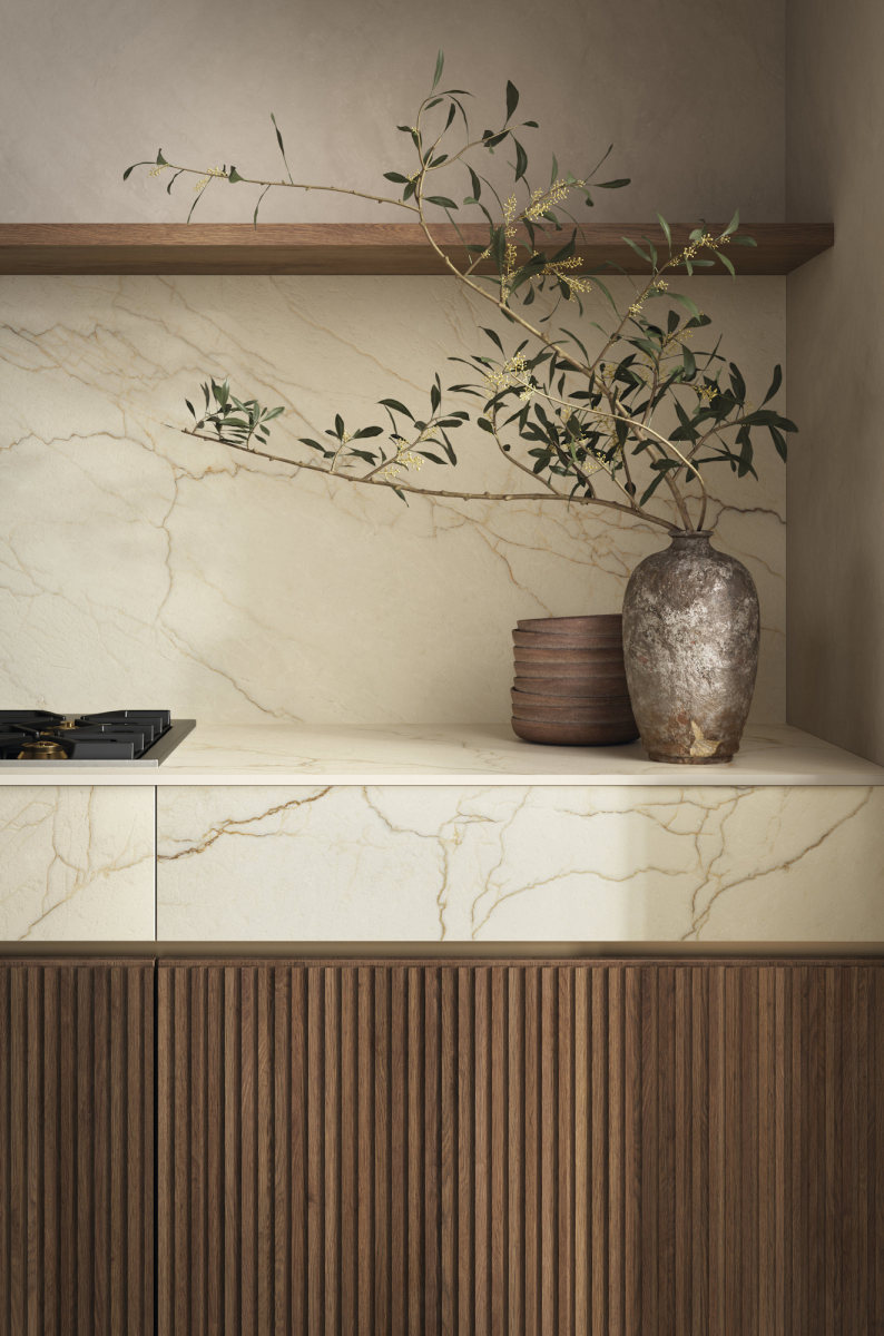 FMG Maxfine Marmi Crema Avorio привносит в любой интерьер изысканность и теплоту. Мраморная текстура пленяет своим кремовым оттенком, словно согретым лучами солнца. Тонкие коричневые прожилки и натуральные вмятинки, деликатно пронизывающие поверхность, придают материалу глубину и реалистичность. Это воплощение тепла и уюта, идеальное решение для создания атмосферы спокойствия и гармонии в любом помещении, будь то классический, минималистичный или ретро-интерьер. Универсальность керамогранита позволяет сочетать его с самыми разнообразными материалами и элементами декора. Мозаика, яркие аксессуары, натуральные ткани и мебель – все это заиграет новыми красками в обрамлении этой изысканной керамической плиты.