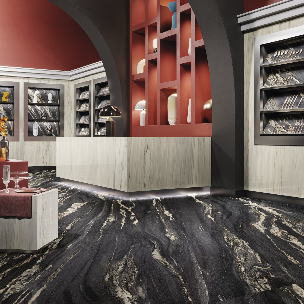 Узнать ценуFMG Maxfine Marmi Kuroca – роскошный современный декор из керамогранита для смелых и эксцентричных дизайнерских решений. Имеет глубокий темно-коричневый оттенок, испещренный оранжево-серыми магматическими прожилками и живописными разломами, которые создают неповторимый визуальный эффект и притягивают взгляд к природной красоте камня. Идеально подходит для создания стильных и эффектных интерьеров в современном стиле или стиле хай-тек. Материал станет изысканным украшением стен, пола и даже облицовки мебели, добавляя пространству глубину и характер. Kuroca особенно эффектно смотрится в качестве акцентных стен в гостиной, прихожей, ванной комнате, офисе, гостинице, магазине или деловом центре. Его выразительный рисунок привлекает внимание и создает атмосферу утонченной элегантности. Превосходно сочетается со светлыми однотонными коллекциями, позволяет создавать контрастные и гармоничные интерьерные проекты.