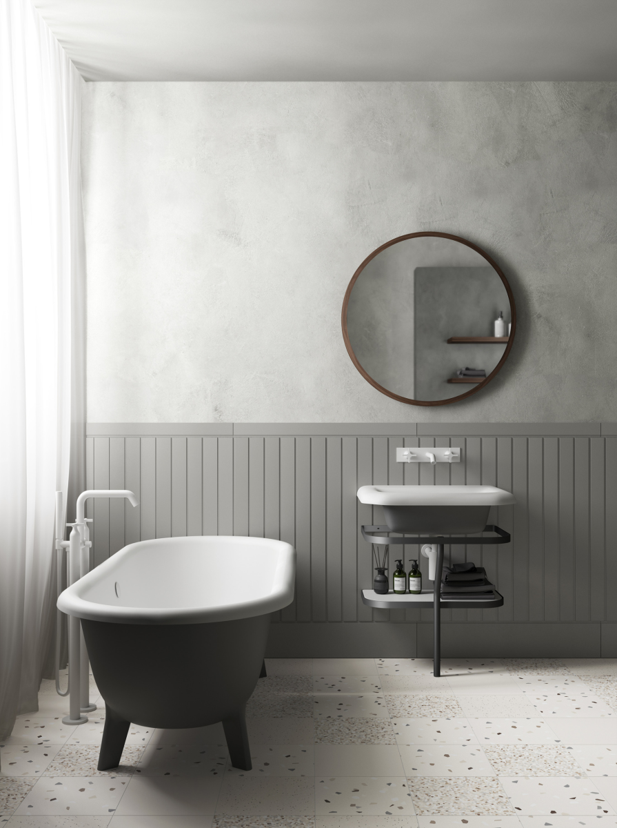 Элементы позволяют украшать стены плинтусами или создавать полные покрытия в различных помещениях дома. Материал идеально подходит для создания современных интерьеров, добавляя в них нотку ретро-шика. Коллекция включает 13 хроматических тонов и легко, органично адаптируется к различным стилям и сочетается с другими коллекциями Micro.