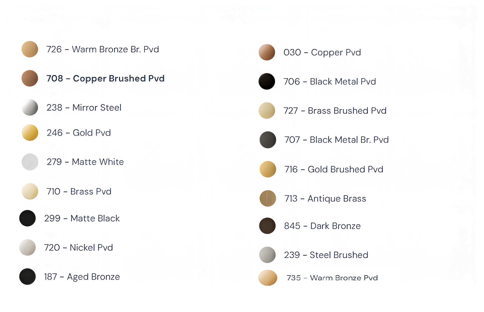 Оттенок Black Metal Brushed PVD придаёт накладной панели верхнего душа Gessi Afilo глубокий матовый оттенок с сатиновым эффектом, который устойчив к царапинам и коррозии. Такая поверхность выглядит одновременно строгой и выразительной, легко сочетается с современными и индустриальными интерьерами и подчёркивает премиальность сантехнического решения. Технология PVD гарантирует долговечность внешнего вида при регулярной эксплуатации и простой уход.