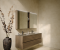 Тумба выполнена в роскошной отделке меламин "Gold Walnut" (Золотой Орех), который придает интерьеру глубину и тепло. Столешница из инновационного Purefeel "London Grey" с интегрированной раковиной Grace формирует единый, безупречный ансамбль. Зеркало Gleam и открытые полки в тон "Gold Walnut" завершают образ, подчеркивая функциональность и стиль.