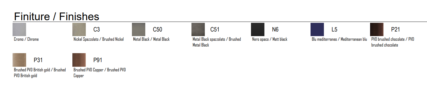 Покрытие Brushed Chocolate создает глубокий матовый оттенок с бархатистой текстурой, устойчивой к воздействию влажной среды и механическим воздействиям. Встраиваемая конструкция позволяет создать визуально лаконичное решение, оставляя скрытым внутренний механизм.
