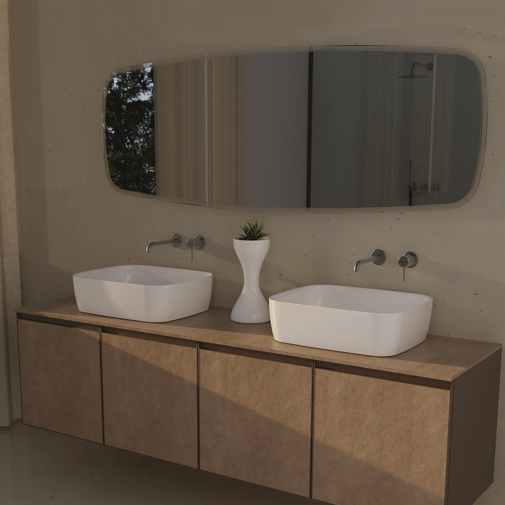 Тёплый оттенок Terracotta наполняет интерьер мягкостью и характером, создавая атмосферу уюта и естественного тепла. В сочетании с деревом, бетоном или металлом эта модель становится выразительным акцентом, который делает оформление санузла продуманным и завершённым.