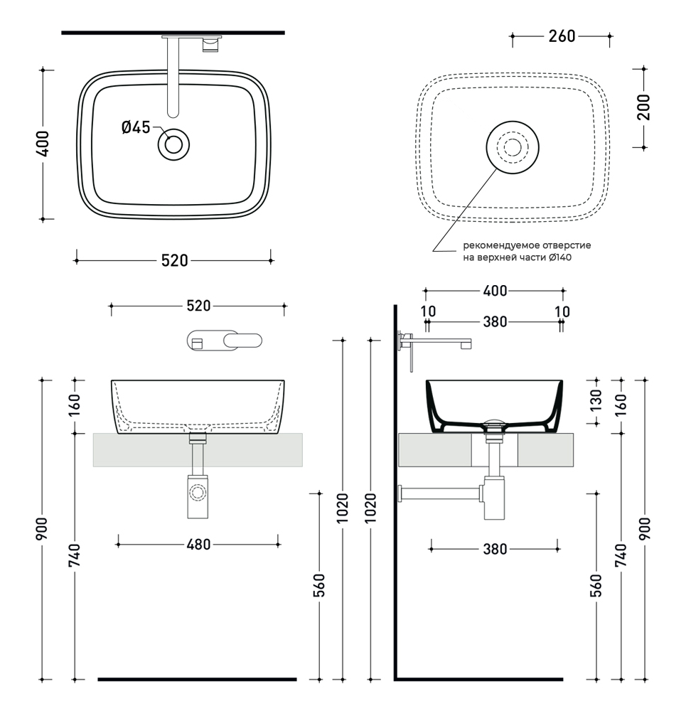 Конструкция без отверстий для смесителя и перелива сохраняет чистоту линий и визуальную гармонию. Керамическая поверхность устойчива к влаге и бытовым средствам, легко очищается и не теряет блеска даже при частом использовании. Глянцевая отделка отражает свет, визуально увеличивая пространство и придавая помещению аккуратный ухоженный вид.