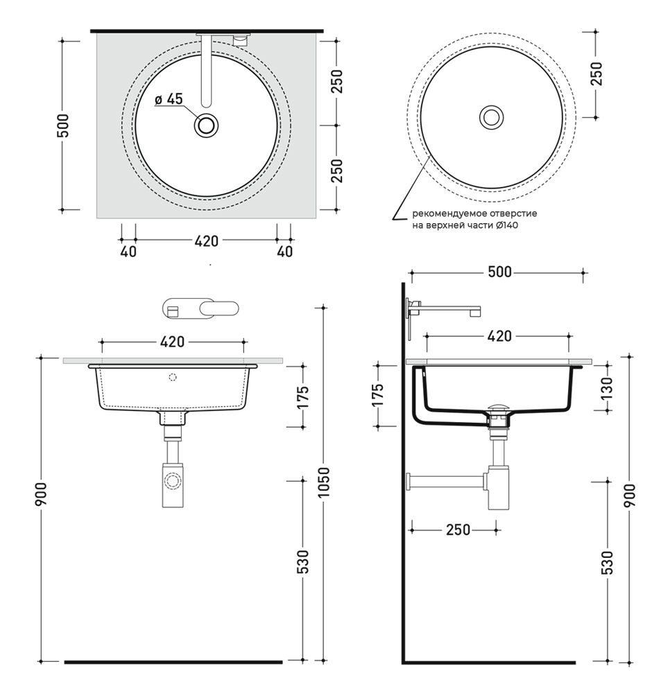 Раковина Flaminia TwinSet Slim выполнена в лаконичном дизайне и отличается утончённой формой. Круглая чаша диаметром 420 мм и высотой 175 мм создаёт ощущение лёгкости и изящества, при этом сохраняет удобную глубину для комфортного использования. Благодаря встраиваемому монтажу под столешницу поверхность выглядит аккуратно и целостно, а сама модель визуально освобождает пространство.