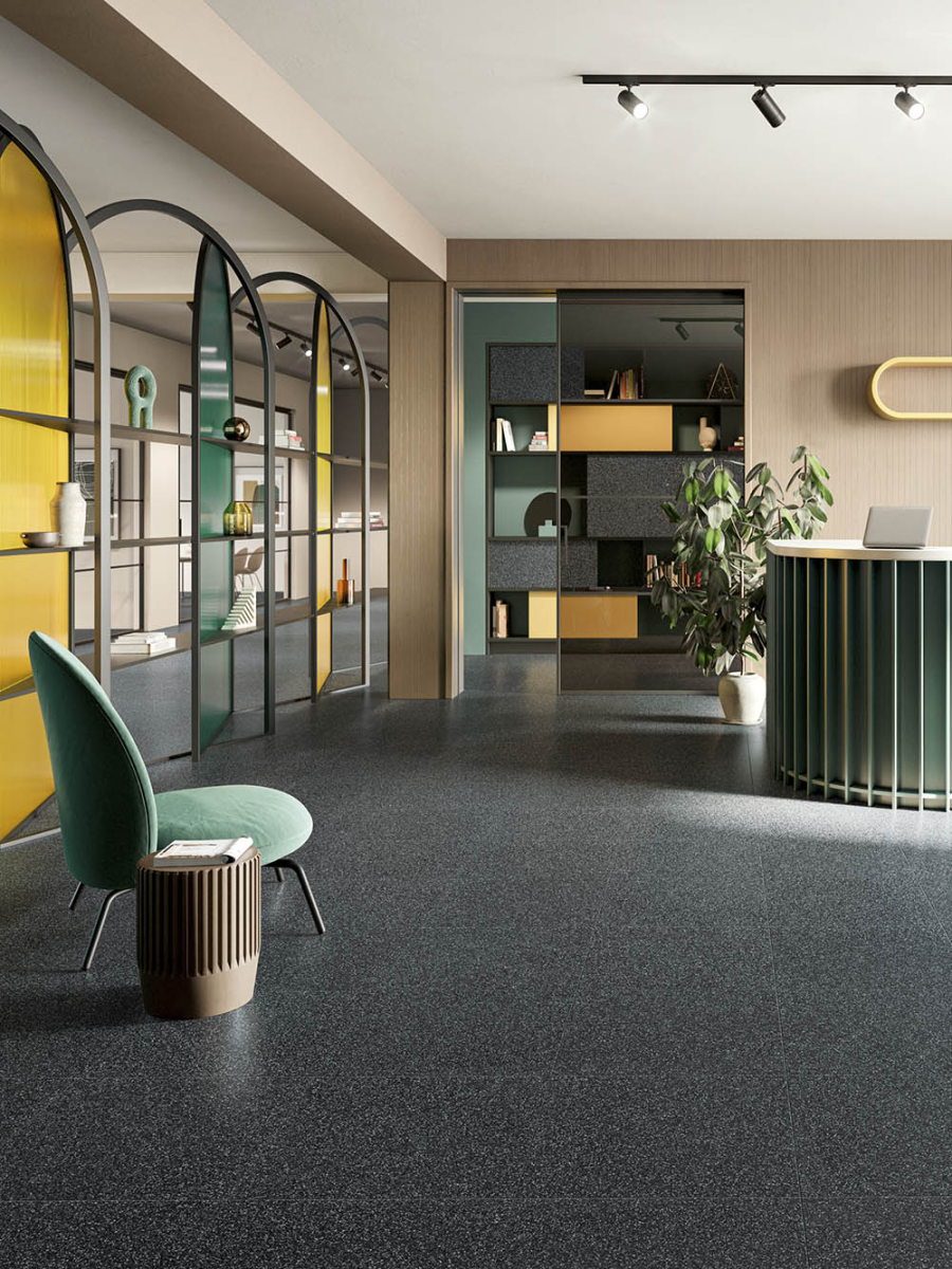 Узнать ценуКерамогранит REFIN FLAKE BLACK SMALL 60 х 60 х 9 — это истинное воплощение изящества и современного стиля, способное преобразить любое пространство. Его утонченный дизайн в формате Venezia Terrazzo объединяет в себе холодный черный цвет с насыщенными вкраплениями из мраморной крошки, природных минералов и камней различных пород, измельченных до мелкой фракции, создает эффектный и индивидуальный узор, притягивающий внимание.