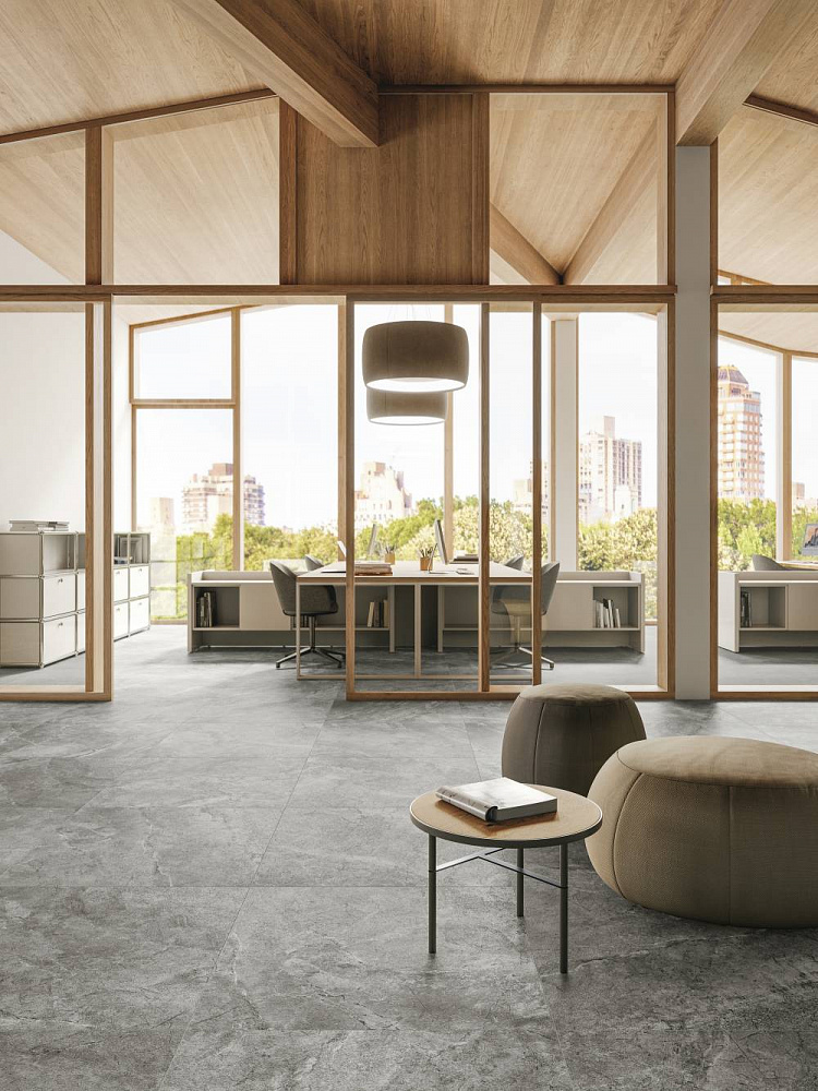 Этот керамогранит объединяет в себе высокую эстетичность и практичность, делая интерьер светлым, просторным и престижным.