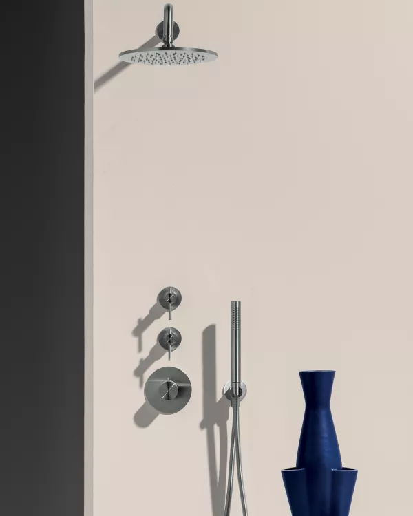 Брашированная поверхность с тактильной насечкой мягко рассеивает свет, подчеркивая характерный для коллекции индустриальный стиль. Медный оттенок с матовой текстурой гармонично сочетается с различными вариантами отделки ванной комнаты. Надёжное PVD-покрытие устойчиво к механическим воздействиям и влажной среде, что гарантирует сохранение внешнего вида изделия при регулярном использовании. Ручная лейка Zucchetti Helm демонстрирует сбалансированный подход к созданию сантехнических аксессуаров, где внимание к функциональным деталям сочетается с лаконичной эстетикой, делая его практичным решением для современного интерьера.