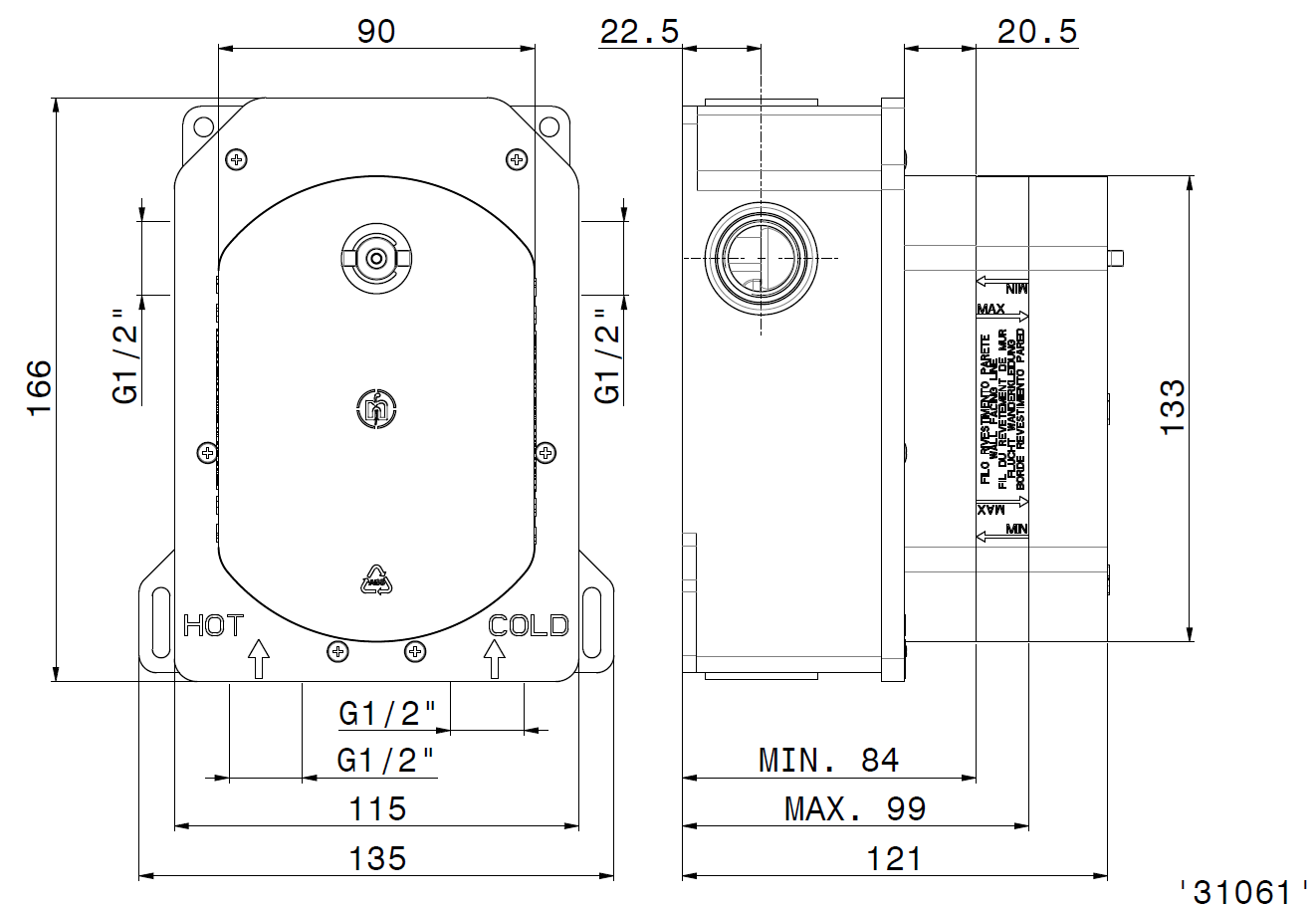 Скрытая часть Newform для термостата на 2 выхода — это базовый модуль, который монтируется в стену и обеспечивает подключение двух независимых потребителей воды, например верхнего и ручного душа. Узел рассчитан на стабильную работу с термостатическим элементом: поддерживает заданную температуру, снижает перепады при колебаниях давления и делает переключение между контурами плавным и предсказуемым.
