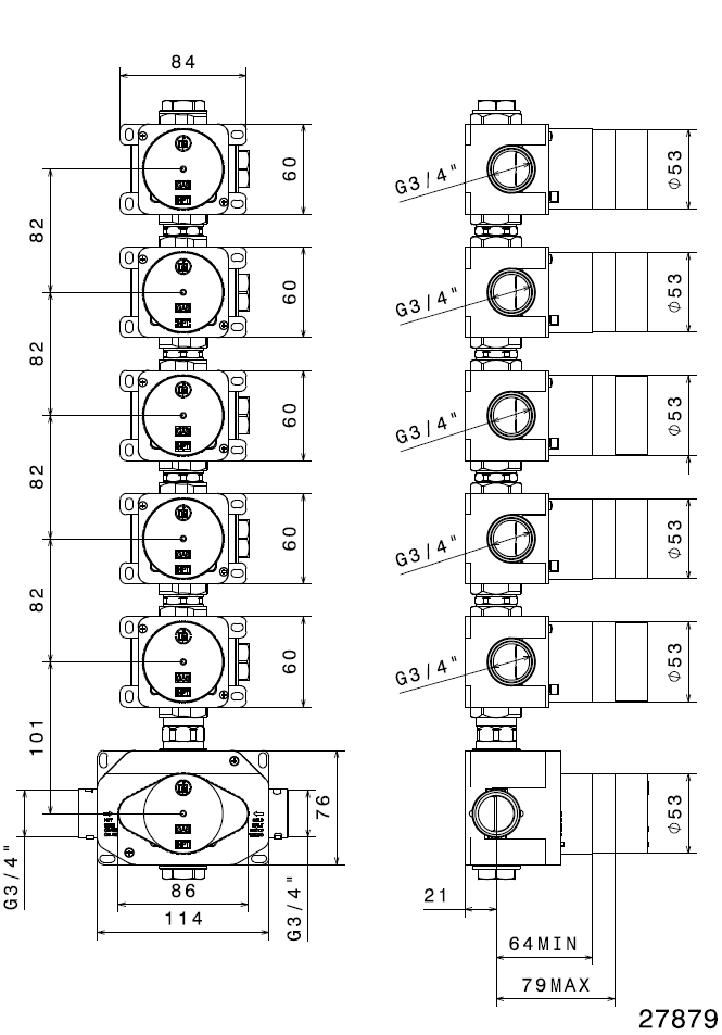 Скрытая часть смесителя Newform на 6 отверстий представляет собой технологическую основу для создания комплексных и функциональных сантехнических решений, где акцент делается на чистые линии и минималистичный дизайн. Она предназначена для инсталляции внутри стены, полностью скрывая все монтажные элементы и водопроводные коммуникации. Благодаря такому подходу на виду остаются лишь элегантные изливы, рукоятки управления и душевые лейки, создавая ощущение простора и визуальной лёгкости в ванной комнате.