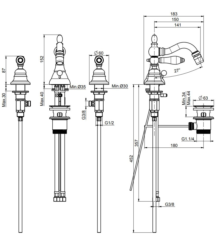 Изделие выполнено из высококачественной латуни с прочным покрытием цвета античной бронзы, устойчивым к износу и сохраняющим благородный внешний вид на протяжении многих лет. В комплект входят донный клапан 1.1/4 и две гибкие подводки, обеспечивающие надёжность соединений и удобство установки. Декоративные элементы подчёркивают элегантность коллекции, создавая гармонию между функциональностью и стилем.