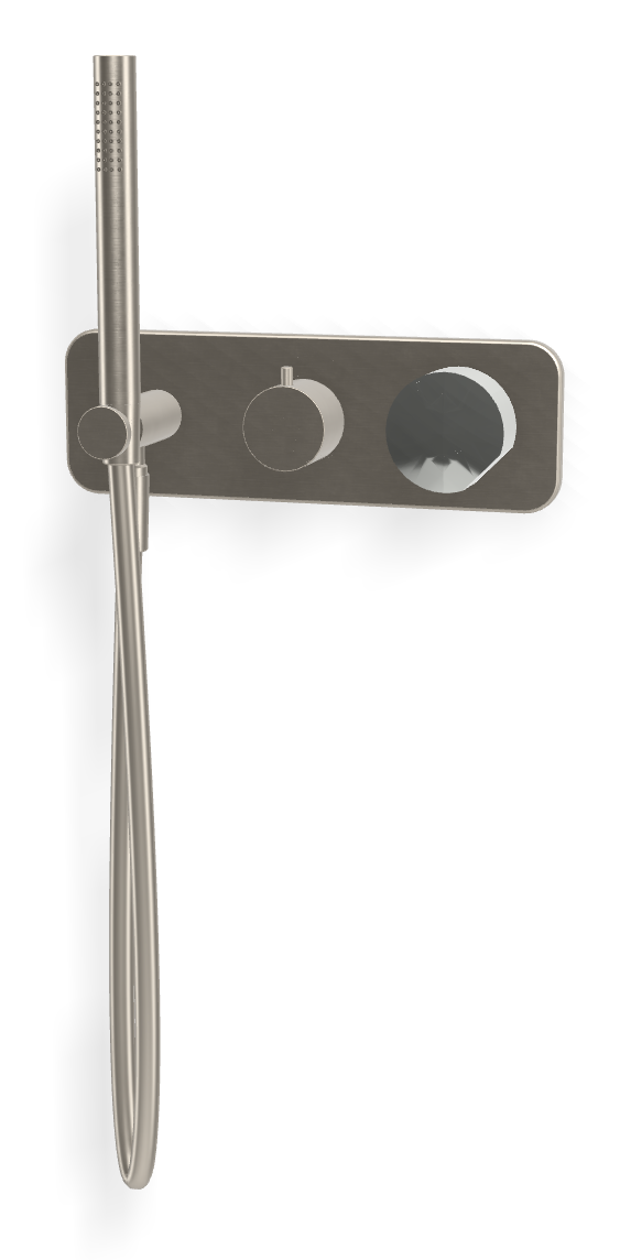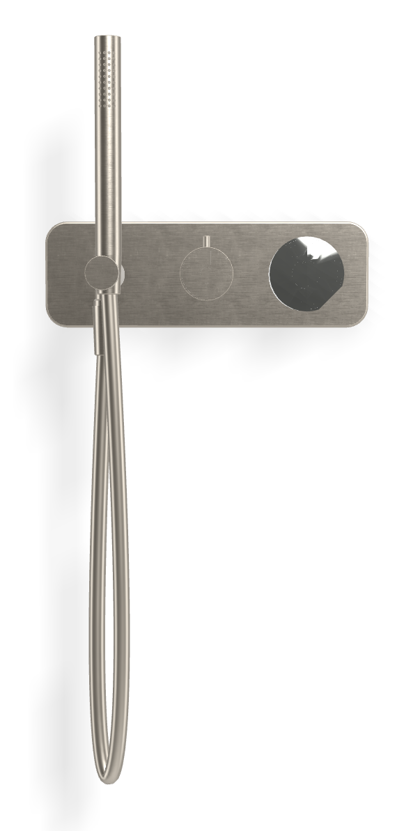 Модель рассчитана для встраиваемого монтажа, внешняя часть поставляется без ручек, что позволяет выбрать подходящий вариант управления в единой стилистике интерьера.