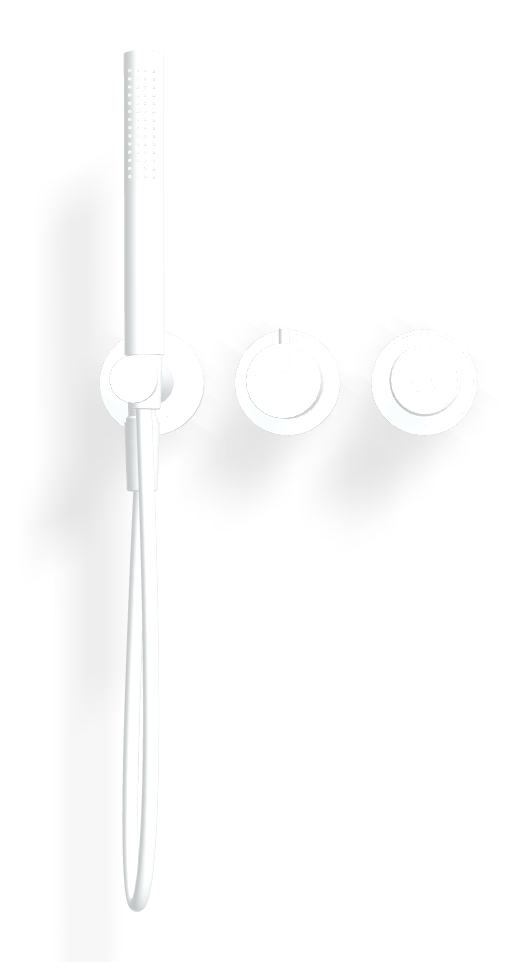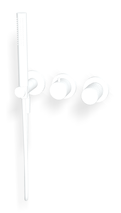 Белый матовый оттенок создаёт мягкую бархатистую поверхность, которая подчёркивает современную минималистичную композицию и визуально освежает пространство. Он хорошо согласуется со светлой плиткой, акцентными тёмными поверхностями, камнем и микробетоном. Ручка X Collection добавляет изделию характерную гранёную геометрию и делает управление интуитивным: настройка потока ощущается плавной, а переключение между потребителями происходит естественно и без лишних усилий.