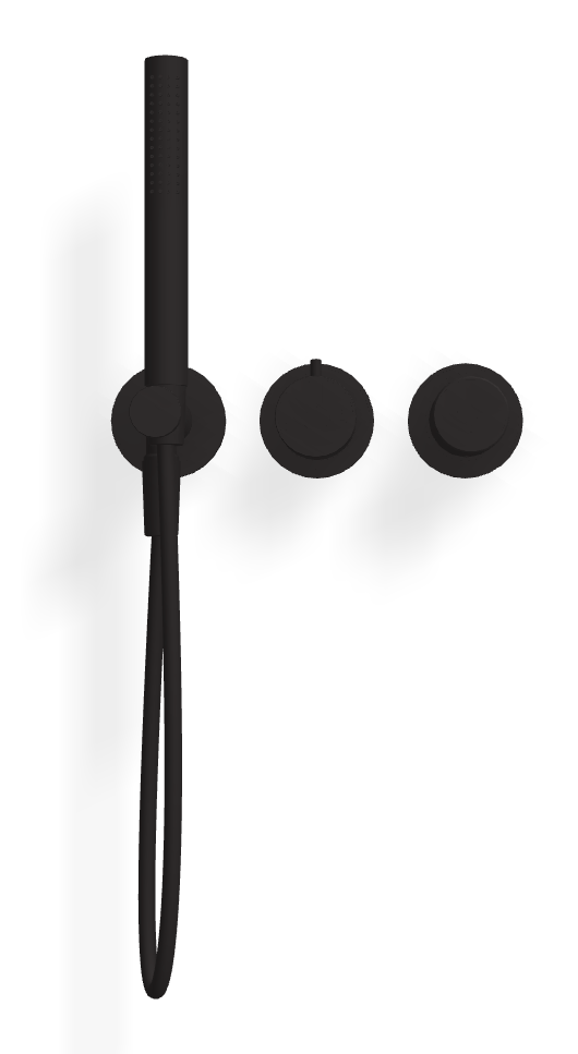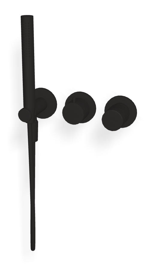 Смеситель для душа Carlo Frattini Spillo Tech с ручкой X Collection в чёрном матовом цвете подойдёт тем, кто предпочитает графичную строгую эстетику и выразительные контрасты в интерьере. Модель рассчитана на подключение двух потребителей, поэтому её удобно использовать при сочетании верхнего и ручного душа. Во внешнюю часть входят ручной душ и гибкий шланг хромалюкс длиной 1500 мм — в результате формируется комплект, который можно сразу монтировать.