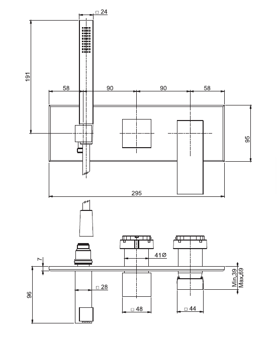 Смеситель для душа Carlo Frattini Zeta во встраиваемом исполнении подойдёт тем, кто предпочитает лаконичное оформление без лишних деталей на стене. Комплект включает внешний модуль с переключателем на два потребителя, ручной душ и гибкий шланг, что делает систему удобной для повседневного использования — можно легко чередовать верхний и ручной душ или подключать дополнительные элементы. Аккуратная геометрия панели поддерживает чистую визуальную линию и сохраняет порядок в душевой зоне.