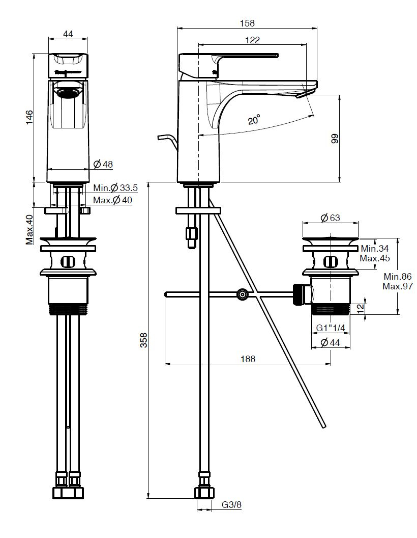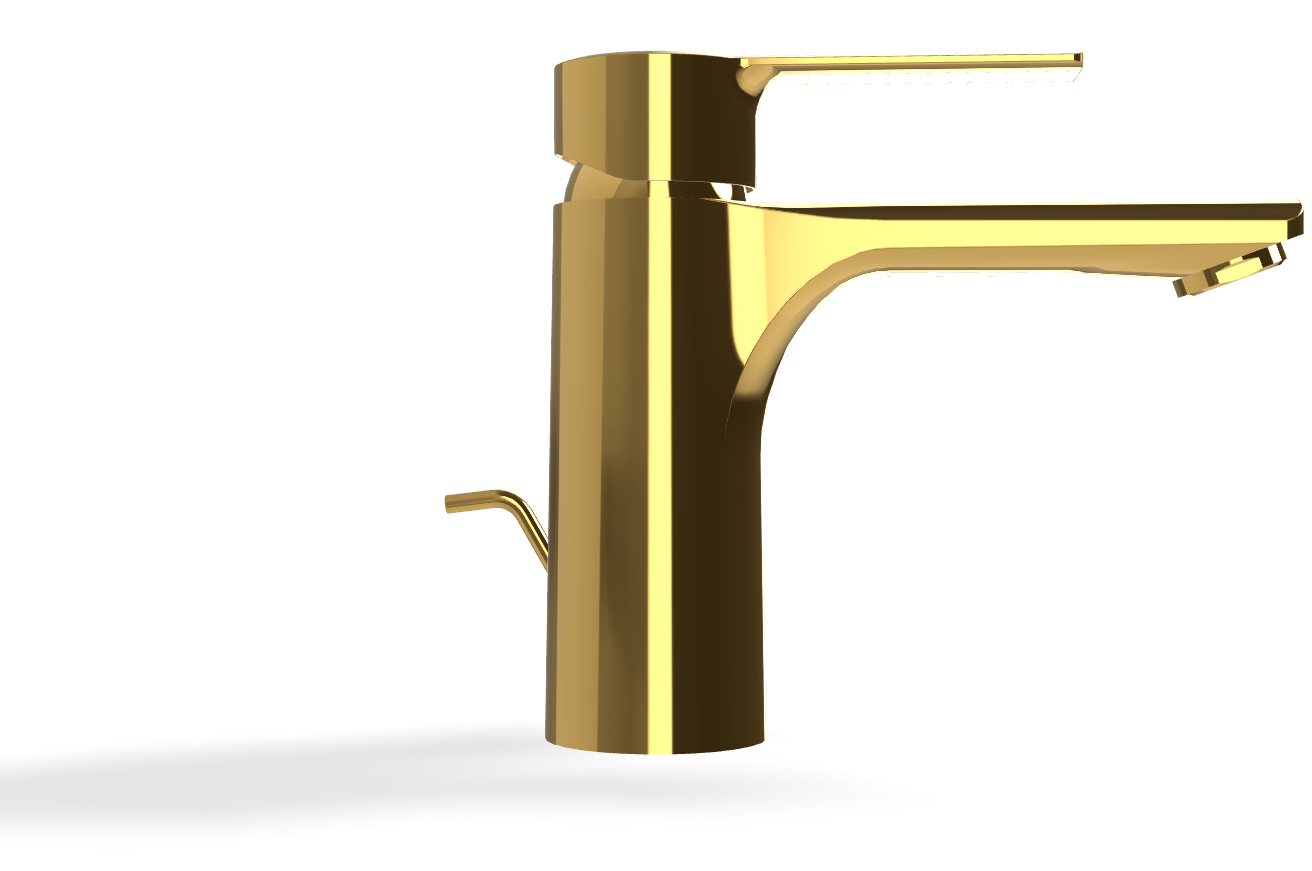 Корпус выполнен из прочной латуни с износостойким покрытием в цвете золото, устойчивым к потускнению и влажной среде. В комплект входят донный клапан 1”1/4 с переливом и две гибкие подводки, что делает установку максимально удобной и надёжной. Смеситель отличается продуманной эргономикой и долговечностью, сохраняя первозданный внешний вид даже при интенсивной эксплуатации.