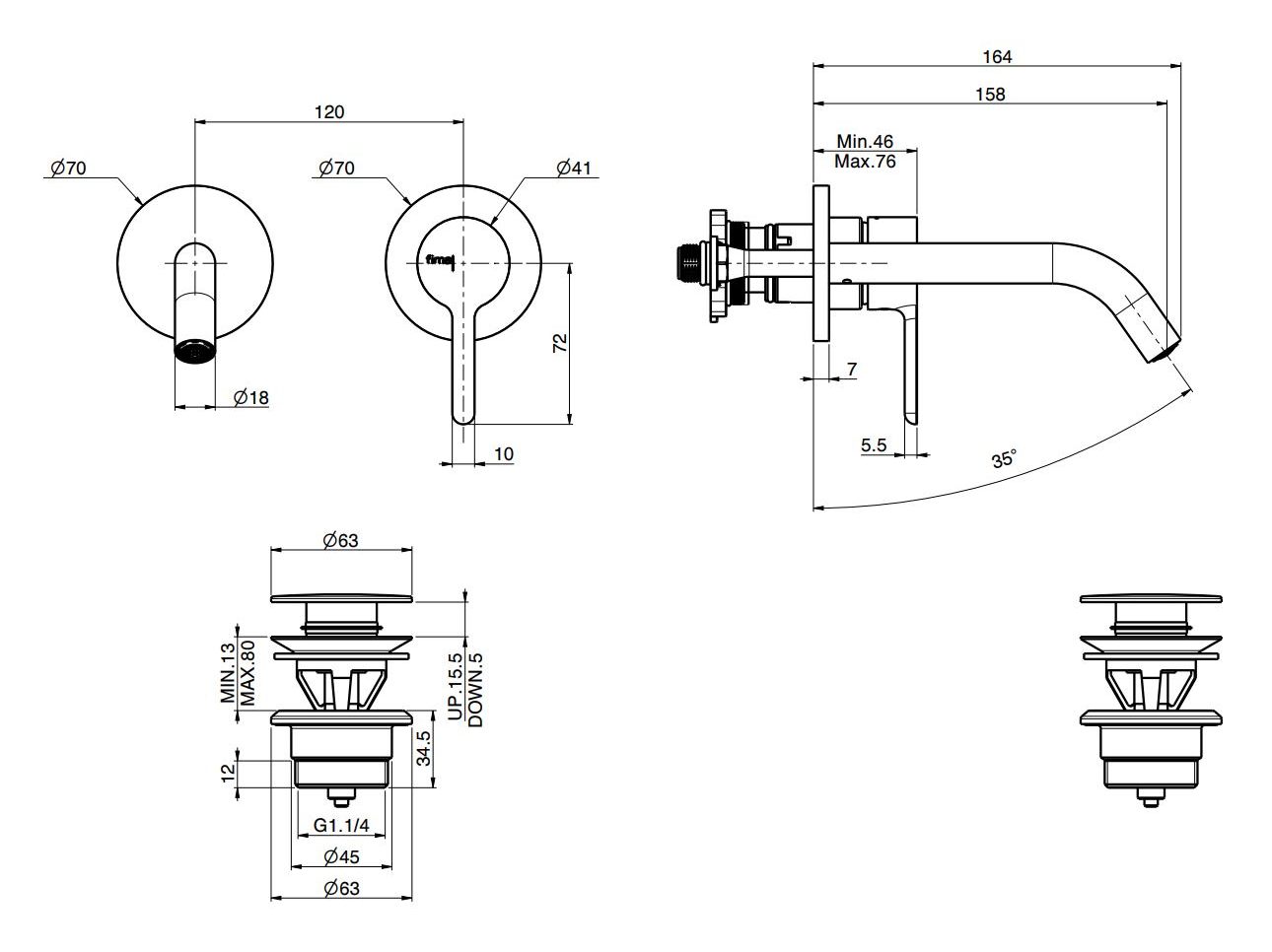 Настенная конструкция смесителя обеспечивает аккуратное размещение и экономию полезного пространства. Излив длиной 158 мм формирует чёткий поток воды, а донный клапан Click-Clack упрощает эксплуатацию. Корпус выполнен из высококачественной латуни с износостойким покрытием.