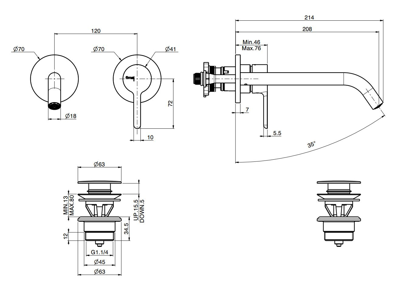 Смеситель для раковины Carlo Frattini Snap в цвете брашированная шампань создан для тех, кто ценит изысканные акценты и утончённые формы. Настенная конструкция позволяет сохранить чистоту поверхности умывальника, а встроенный аэратор формирует мягкий равномерный поток воды. Донный клапан Click-Clack делает использование модели удобным и современным, подчёркивая её функциональную завершённость.