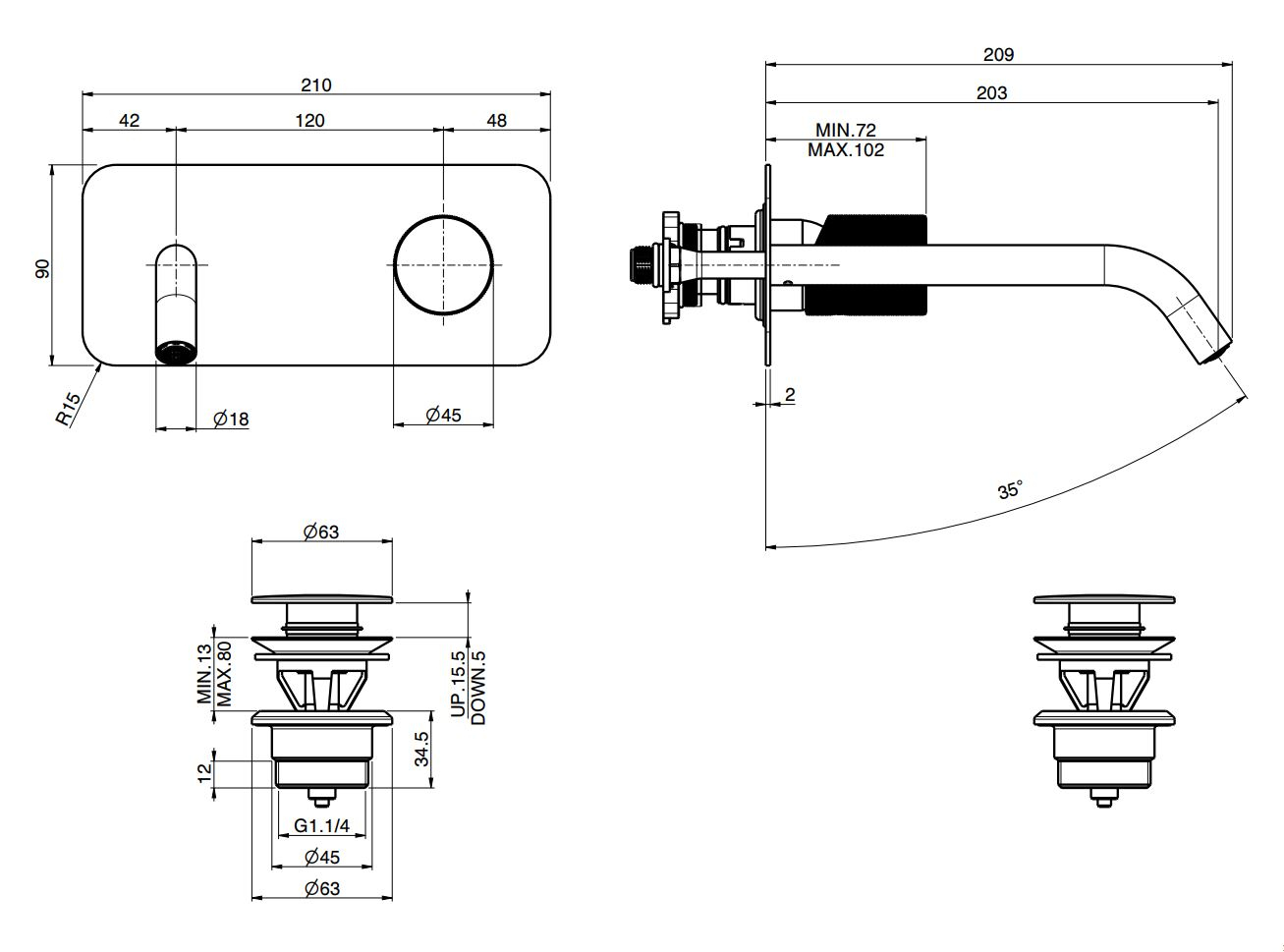 Смеситель для раковины Carlo Frattini Spillo Tech в золотом цвете подойдёт для интерьеров, где важно подчеркнуть статус и выразительность деталей. Настенный монтаж освобождает пространство вокруг чаши и создаёт аккуратную композицию, а излив длиной 200 мм обеспечивает удобное расположение потока воды над раковиной. Внешняя часть смесителя формирует чистый визуальный образ и поддерживает архитектурную строгость линии Spillo Tech.