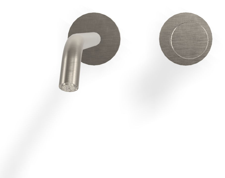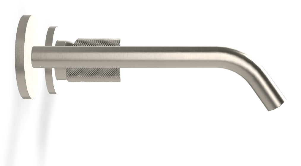 Брашированный никель создаёт мягкую приглушённую поверхность с тонкими следами обработки. Такой оттенок универсален: он легко сочетается с серым камнем, микробетоном, матовой керамикой и деревянными фактурами тёплых или холодных тонов. Цвет выглядит нейтральным, но при этом достаточно выразительным, чтобы подчеркнуть архитектурность настенного смесителя. Ручка G Collection добавляет характерный рельеф и делает управление потоком более точным и тактильно комфортным.