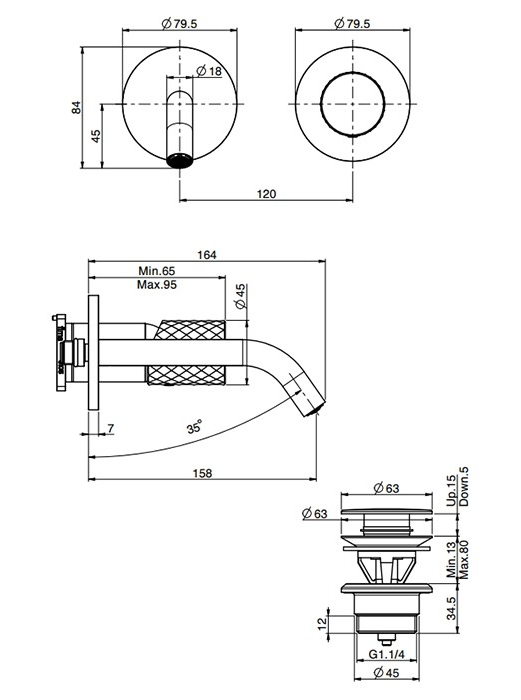 Смеситель для раковины Carlo Frattini Spillo Tech с ручкой V Collection в матовом чёрном цвете подойдёт для интерьеров с чёткой архитектурной логикой и сдержанным характером. Настенный формат помогает сохранить пространство вокруг раковины визуально свободным и аккуратным, а излив длиной 160 мм обеспечивает комфортный вылет для ежедневного использования. Внешняя часть укомплектована донным клапаном Click-Clack, благодаря чему решение выглядит цельным и продуманным.