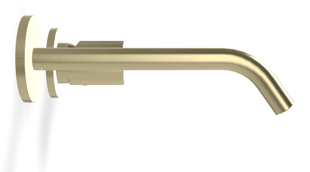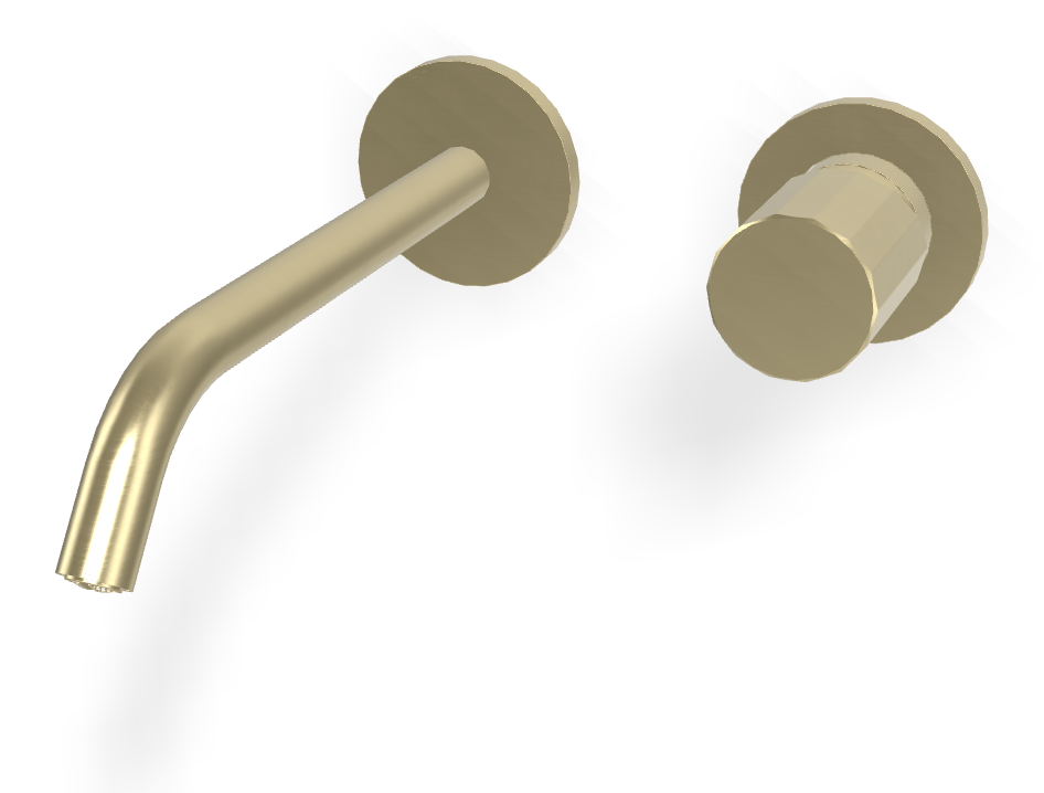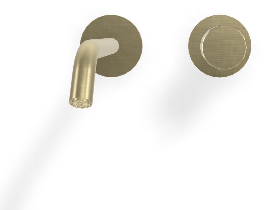 Оттенок брашированной шампани создаёт мягкое теплое свечение без излишнего блеска. Такая отделка удачно подчёркивает светлый камень, молочную плитку, песочные и бежевые фактуры, а рельефная ручка V Collection добавляет выразительную тактильную деталь. Управление водой ощущается точным и плавным, а общий силуэт остаётся аккуратным и графичным.