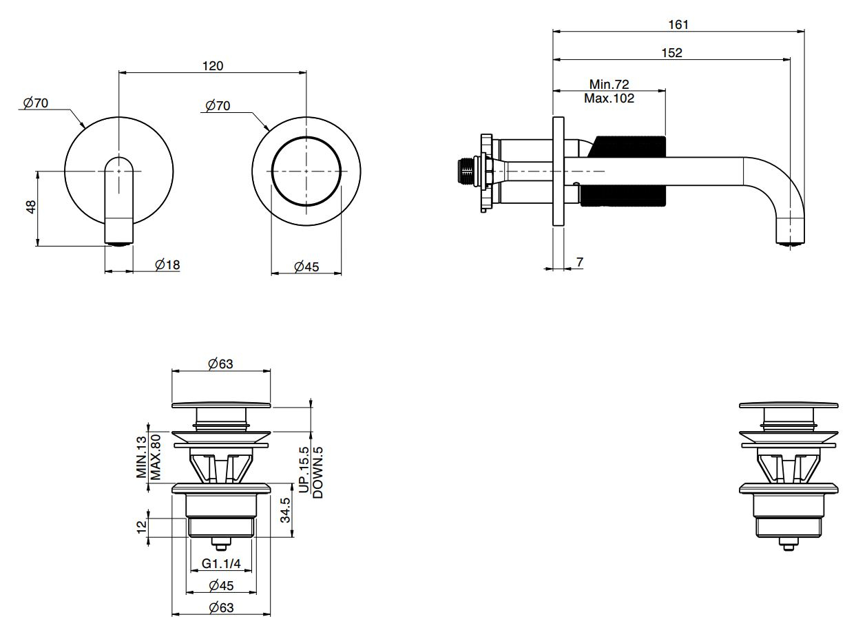 Смеситель для раковины Carlo Frattini Spillo Tech с ручкой X Collection в золотом цвете подойдёт тем, кто ищет акцент с тёплым, выразительным тоном и чёткой геометрией. Настенный формат помогает сохранить пространство вокруг раковины свободным, а излив длиной 150 мм обеспечивает удобный вылет для повседневных задач. Внешняя часть включает донный клапан Click-Clack, благодаря чему комплект выглядит завершённым и аккуратно выверенным.