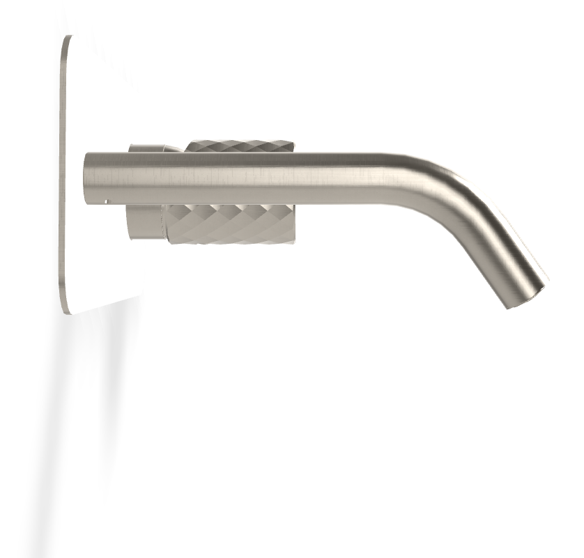 Брашированный никель создаёт мягкую матовую поверхность с деликатным металлическим блеском. Такой оттенок легко вписывается в интерьеры со светлой керамикой, камнем, микробетоном или древесными фактурами. Ручка X Collection добавляет характерный текстурный акцент и даёт чёткое ощущение контроля при регулировке. Поток воды равномерный, а управление остаётся плавным и интуитивным.
