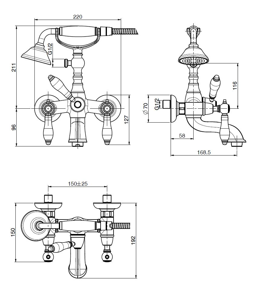 В комплектацию входит душевой набор с латунным шлангом длиной 1500 мм, гарантирующим долговечность и устойчивость к механическим повреждениям. Керамические ручки придают смесителю утонченное винтажное звучание и подчеркивают внимание бренда к эстетике деталей. Механизм отличается плавным и точным управлением потоком и температурой воды, а качественные внутренние элементы обеспечивают стабильную работу на протяжении многих лет.