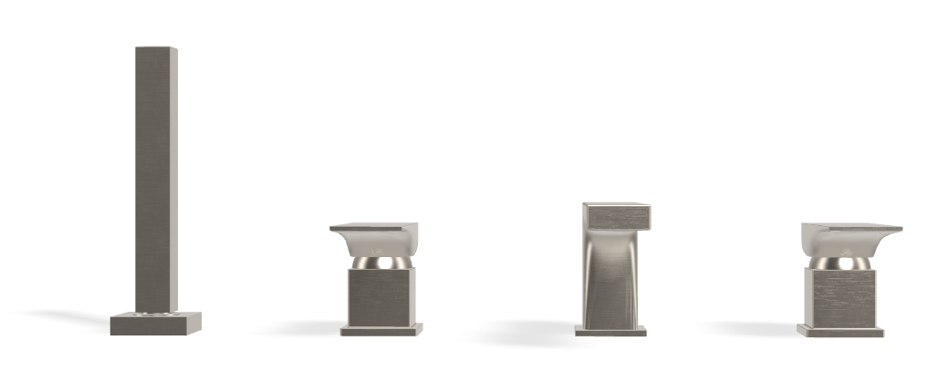 Смеситель для ванны Carlo Frattini Zeta в брашированном никеле создан для тех, кто ценит строгую геометрию и спокойное, благородное металлизированное покрытие. Модель предназначена для установки на борт ванны и монтируется в четыре отверстия, сочетая два рычага управления, излив лаконичной формы и выдвижной ручной душ. Такой формат удобен для тех, кто хочет получить полноценный функционал без перегруженности пространства.