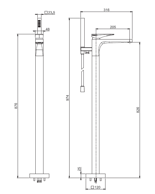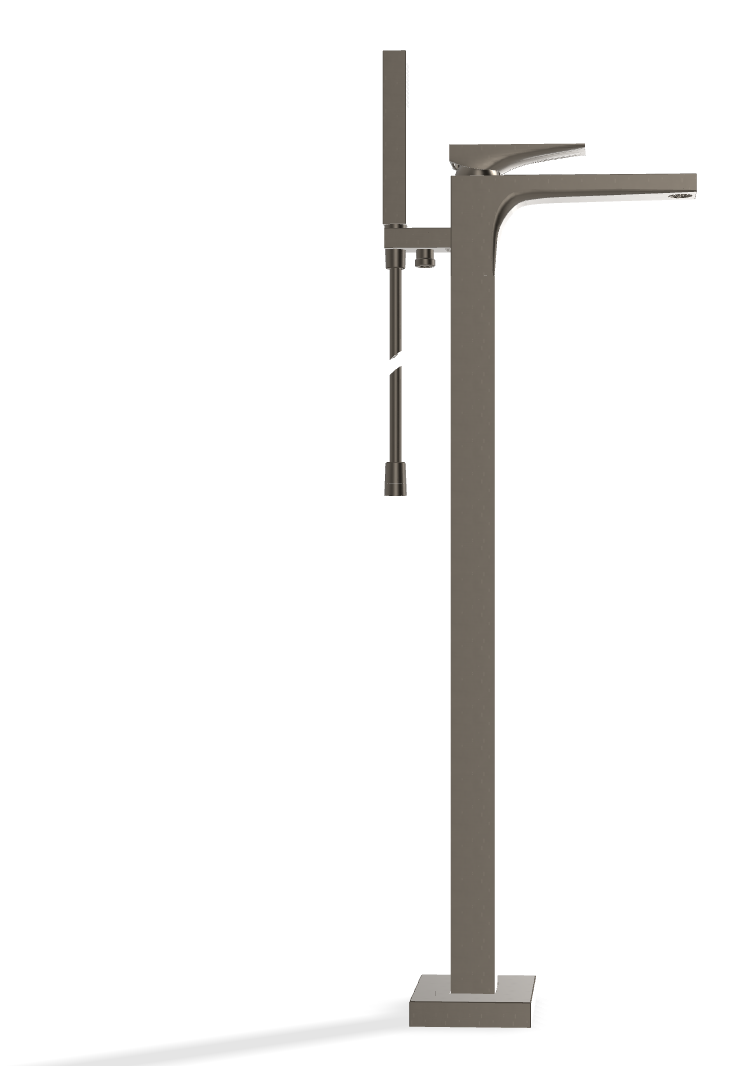 Смеситель для ванны Carlo Frattini Zeta в брашированном черном хроме предназначен для напольной установки и хорошо подходит для ванных комнат со свободно стоящей чашей. Высота конструкции 876 мм помогает сформировать удобную точку подачи воды, а визуальный облик остается лёгким благодаря аккуратной геометрии стоек и тонкому изливу. В комплект входит ручной душ, который удобно использовать для ополаскивания и более точечного направления потока.