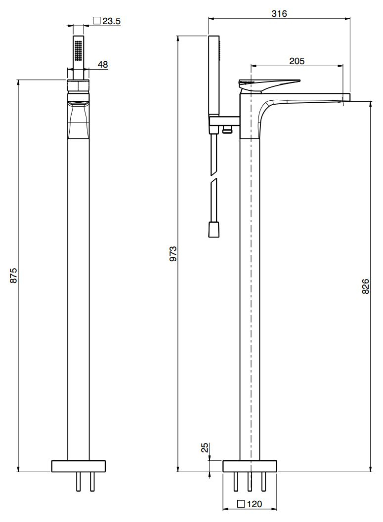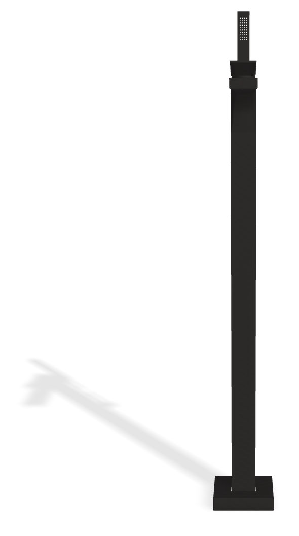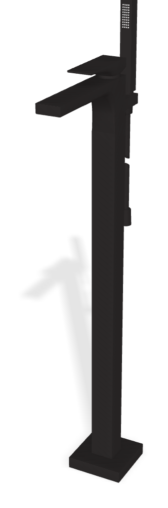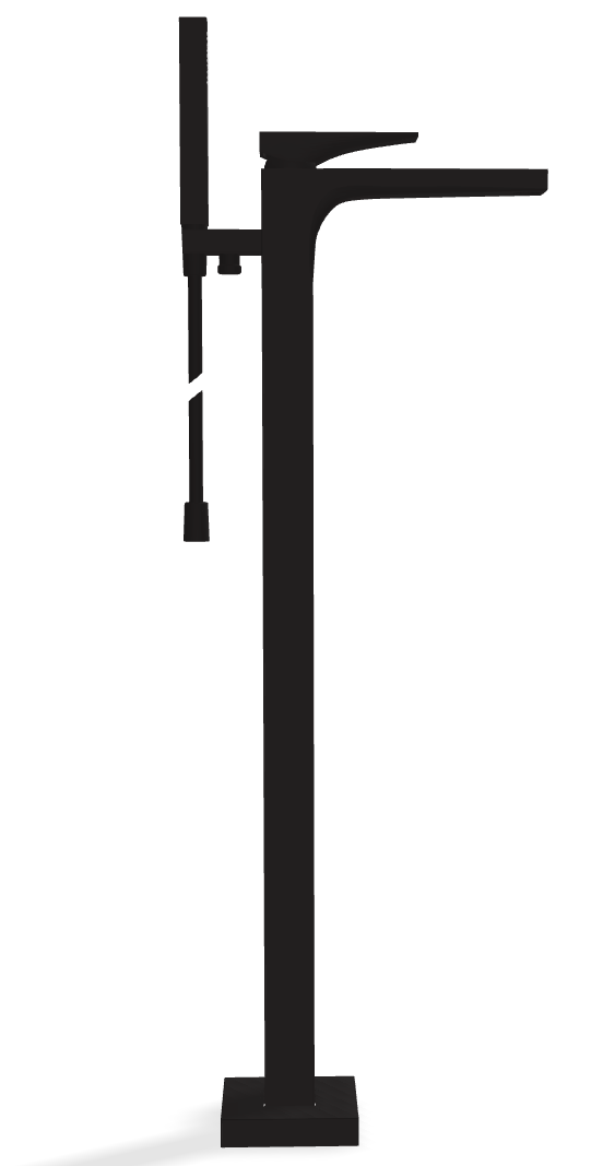 Смеситель для ванны Carlo Frattini Zeta в матовом чёрном цвете предназначен для напольной установки и подходит к интерьерам со свободно стоящей чашей. Высота 973 мм формирует удобную точку подачи воды, а вытянутые пропорции стойки подчёркивают лёгкость конструкции. В комплект входят гибкий шланг хромалюкс 1500 мм, ручной душ и переключатель режимов, благодаря которым использование становится более гибким: удобно направлять поток, ополаскивать поверхности и плавно регулировать работу смесителя.