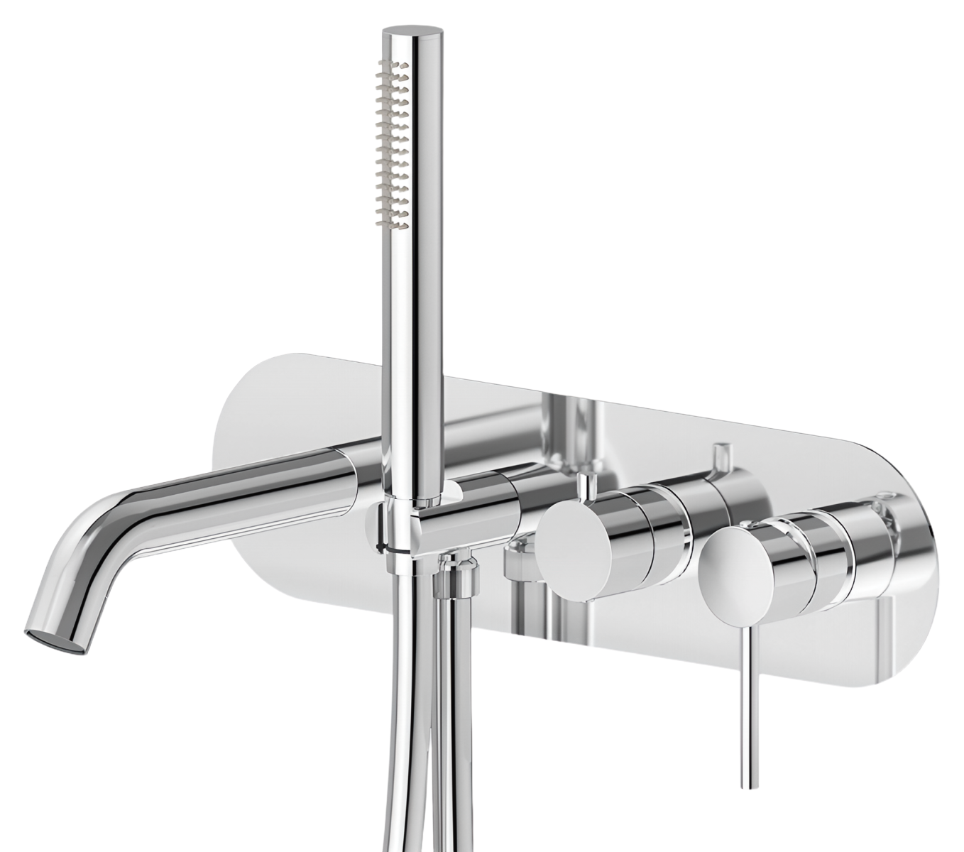 Конструкция смесителя для ванны Newform Xt рассчитана на настенный скрытый монтаж, что обеспечивает аккуратный внешний вид и скрывает коммуникации в стене. Наличие переключателя на два выхода позволяет быстро и удобно переключаться между изливом и ручным душем, а эргономичная форма управляющих элементов делает пользование интуитивно понятным. Такое решение особенно удобно при ограниченном пространстве или при стремлении к максимально чистой визуальной композиции.