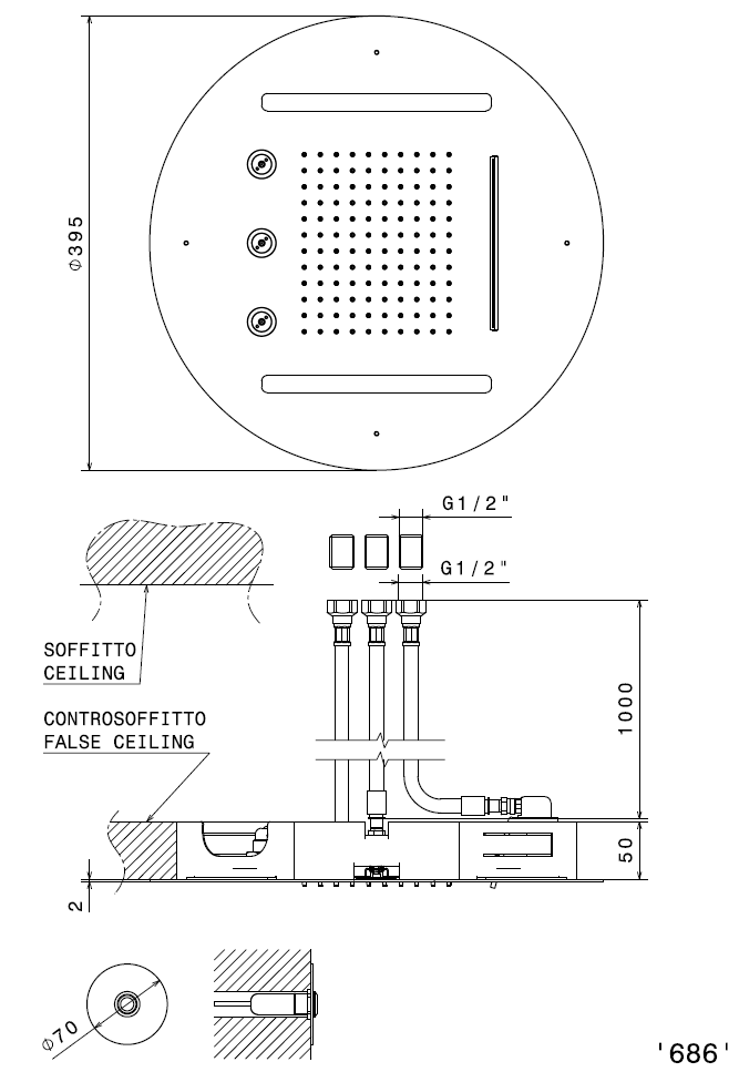 Верхний душ Newform диаметром 400 мм сочетает утончённый дизайн и продуманную функциональность: большая круглая лейка обеспечивает равномерное покрытие и комфорт при приёме душа, а потолочный монтаж создаёт эффект «парящего» оснащения, который визуально расширяет пространство ванной комнаты. Нержавеющая сталь гарантирует долговечность, устойчивость к коррозии и лёгкость в уходе, сохраняя безупречный внешний вид надолго.