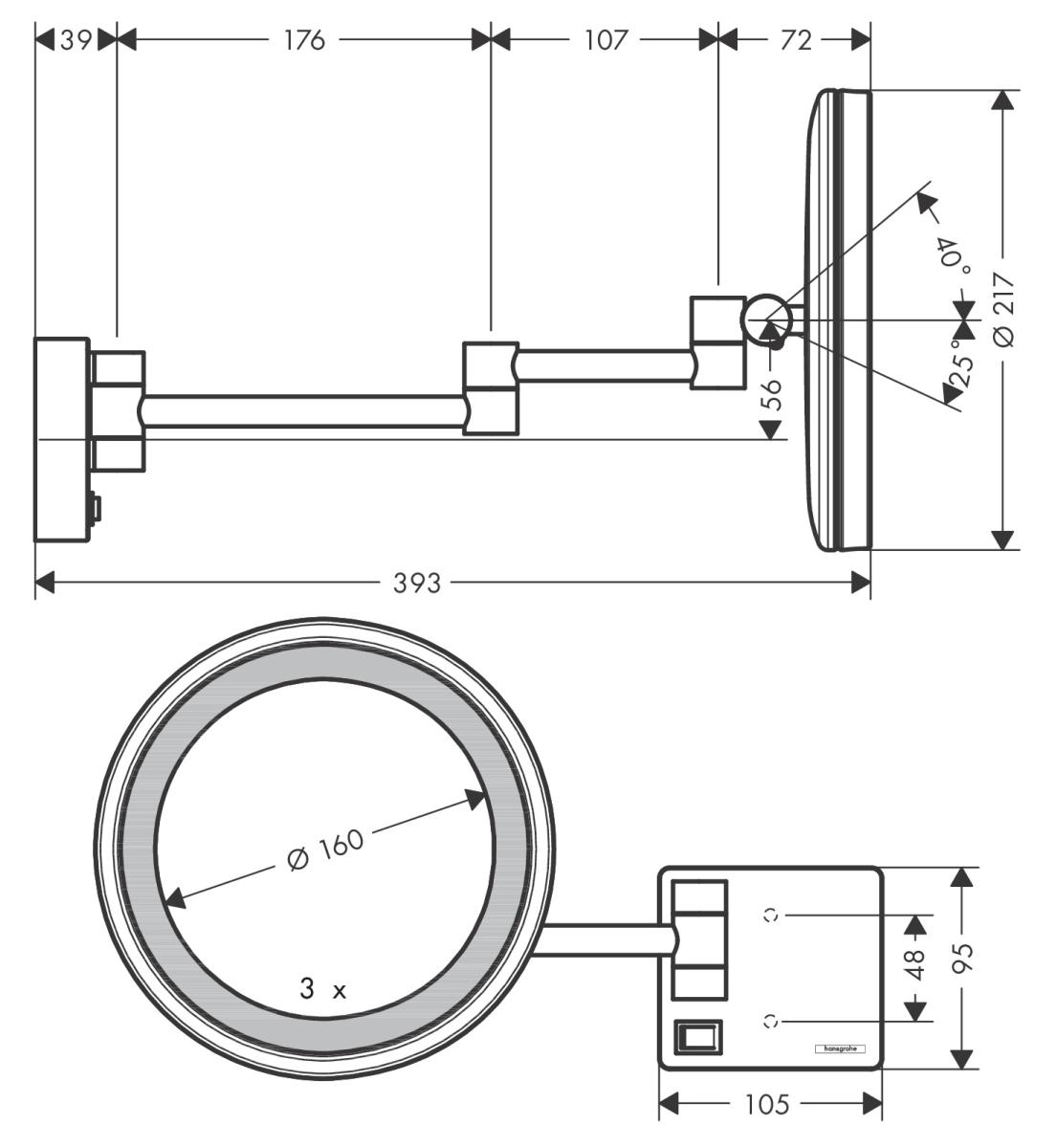 Увеличение в три раза позволяет детально рассмотреть любые детали лица и кожи, что особенно полезно для точного нанесения косметики и коррекции макияжа. Зеркало косметическое Hansgrohe AddStoris простое в эксплуатации, с надежной фиксацией и долговечностью, а светодиодная подсветка энергосберегающая и долговечная, обеспечивая комфортное использование в любое время суток. Полированное золото придает изделию эксклюзивный вид, который органично вписывается в стиль современной ванной комнаты.