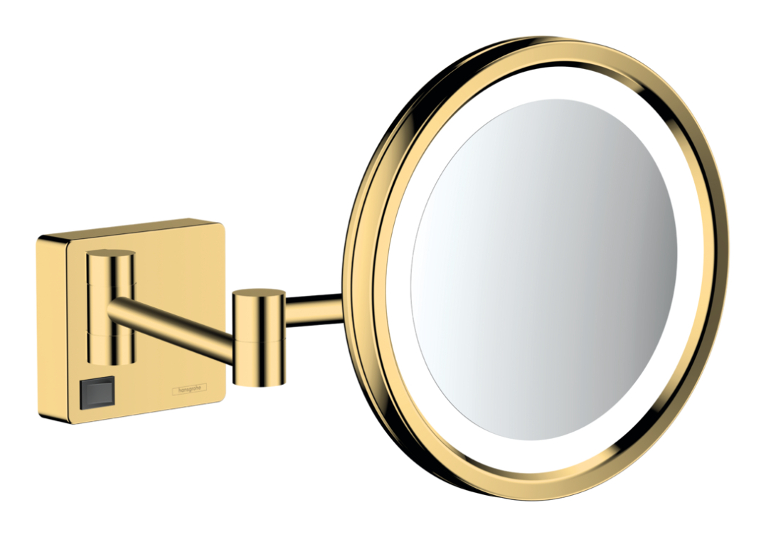 Зеркало косметическое Hansgrohe AddStoris с увеличением в 3 раза обладает высокой функциональностью и стильным дизайном. LED-подсветка обеспечивает яркое и равномерное освещение, которое помогает при выполнении макияжа и ухода за кожей, не создавая теней и обеспечивая естественные цвета. Полированное золото в отделке добавляет роскошный акцент интерьеру ванной комнаты, подчёркивая премиальное качество материала и гармонично сочетается с янтарными и теплыми оттенками плитки.
